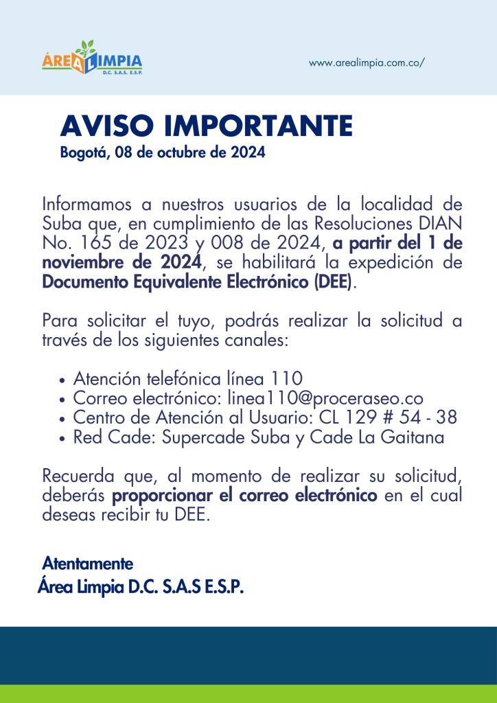 Área Limpia iniciará la implementación del Documento Equivalente Electrónico