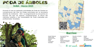 Queridos usuarios de la localidad de Suba. Compartimos con ustedes la programación de los barrios donde estaremos en el mes de marzo, realizando la actividad del servicio de Poda de …