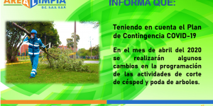Cambios corte y poda Abril Teniendo en cuenta el plan de contingencia COVID – 19 para el mes de abril el 2020 se realizaran los siguientes cambios: ACTIVIDAD DE PODA …