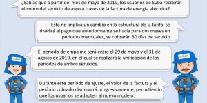 Cobro de Aseo en la factura de energía. A partir del mes de mayo, los usuarios de Suba recibirán el cobro del servicio de aseo a través de la factura …