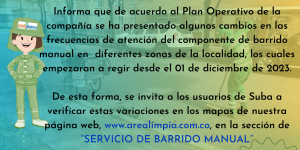 CAMBIOS DE FRECUENCIAS EN ALGUNAS VÍAS DE LA LOCALIDAD DE SUBA – SERVICIO DE BARRIDO MANUAL Y MECÁNICO