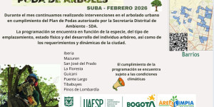 Apreciados usuarios de la localidad de Suba, compartimos con ustedes la programación de los barrios donde estaremos en el mes de febrero, realizando la actividad del servicio de Poda de …