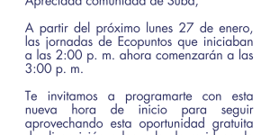 Estimada comunidad de Suba, a continuación presentamos la ubicación de los Ecopuntos de Febrero 2025 a Marzo 2025 que hemos preparado para la recolección gratuita de residuos de construcción, demolición y …