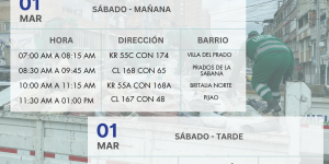 Apreciados usuarios de la localidad de Suba, compartimos con ustedes la programación de los barrios donde estaremos en el mes de Marzo, realizando la actividad del servicio de Poda de …