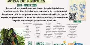 Apreciados usuarios de la localidad de Suba, compartimos con ustedes la programación de los barrios donde estaremos en el mes de abril, realizando la actividad del servicio de Poda de …
