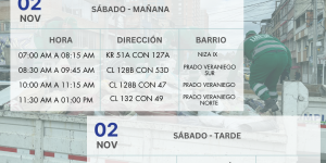 Estimada comunidad de Suba, a continuación presentamos la ubicación de las Ecorutas de noviembre que hemos preparado para la recolección gratuita de residuos de construcción, demolición y voluminosos.