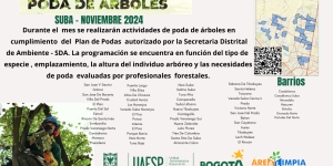 Apreciados usuarios de la localidad de Suba, compartimos con ustedes la programación de los barrios donde estaremos en el mes de noviembre, realizando la actividad del servicio de Poda de …