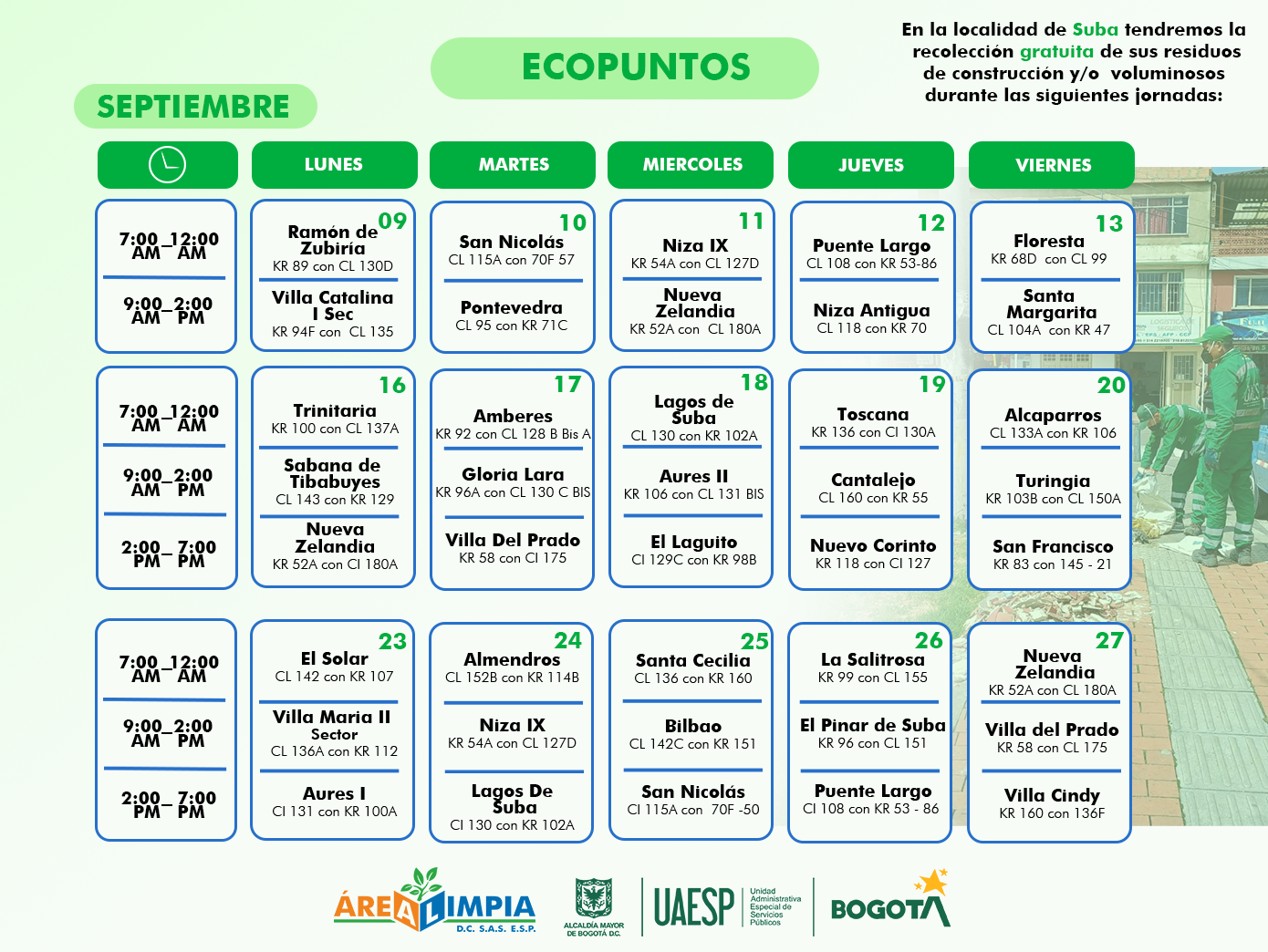 Cronograma Ecopuntos mes de Septiembre 2024