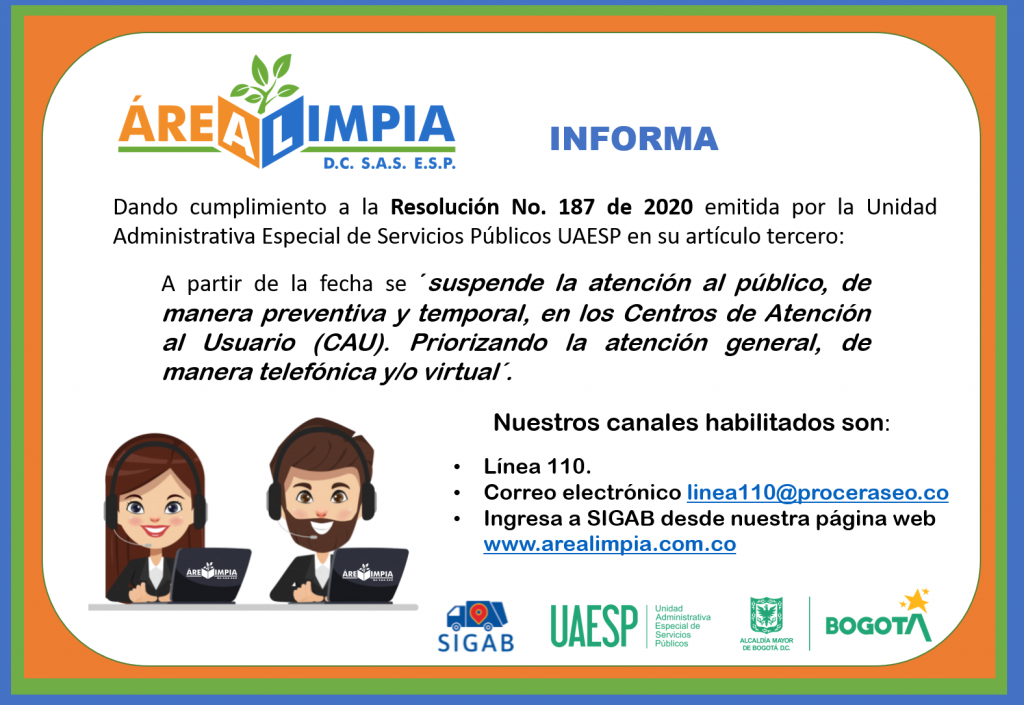 Continuamos tomando las medidas preventivas para mitigar el riesgo y controlar los efectos del COVID -19, según lo establecido por la Alcaldía Mayor de Bogotá y la Unidad Administrativa Especial de Servicios Públicos UAESP #QuedateEnLaCasa